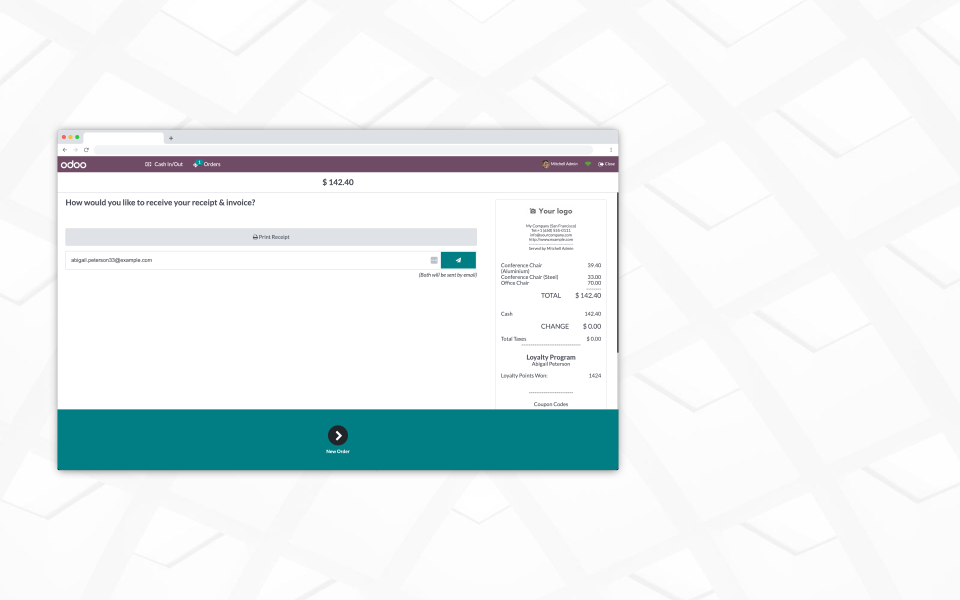 Thanks to its clear and well-designed user interface the POS solution of Odoo can be used both online and offline. The Odoo POS module is integrated in financial accounting and warehouse management what allows you to generate real-time reports of any sales areas. You do not longer need to integrate several applications to your main solution!